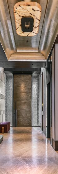 A vestibule to the GREAT ROOM, the ANTEROOM resembles an open library with cosy seating arrangements for users to wind down. This semi-private area also features grid-framed fluted glass windows that offer a glimpse of the lush outdoor greenery.
